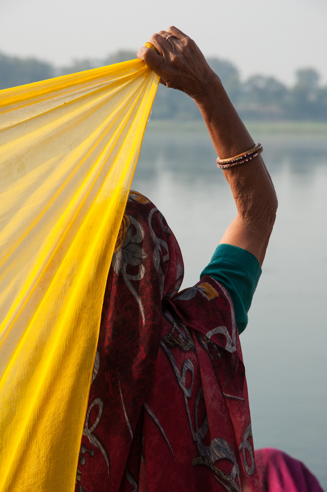 Woman Holding Saree, Narmada River, Madhya Pradesh (India 2011-5670) ©Neil A Meyerhoff 2011