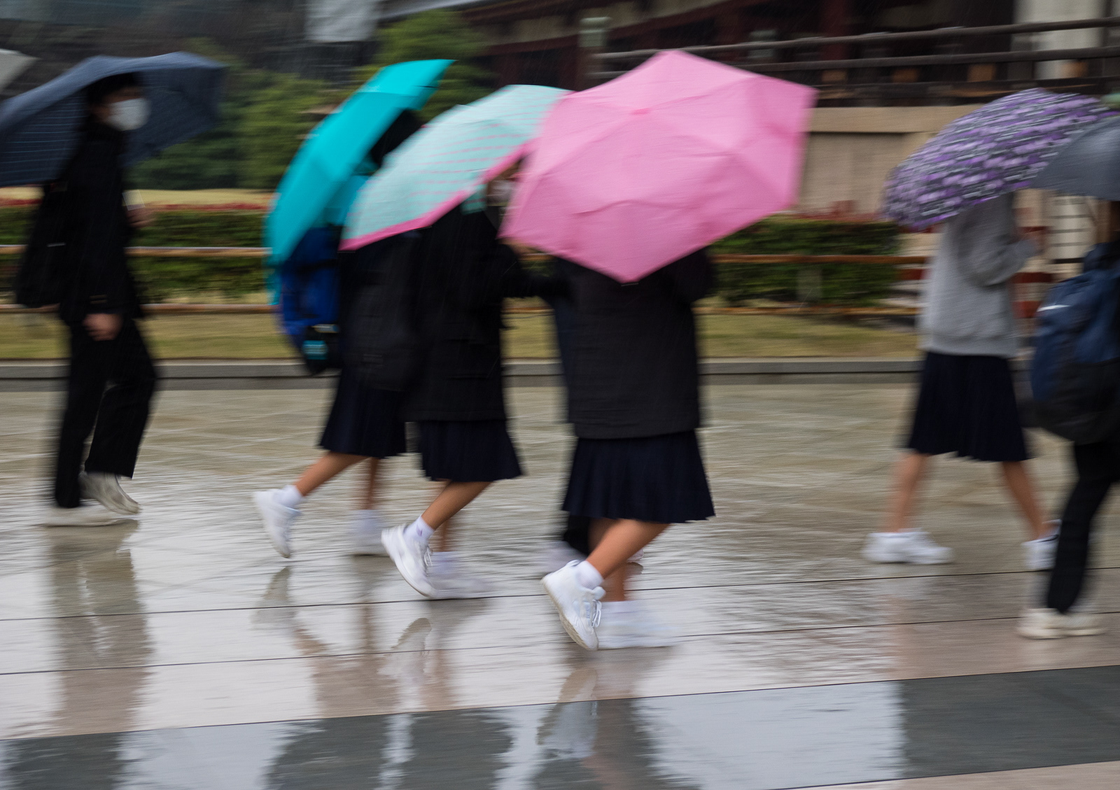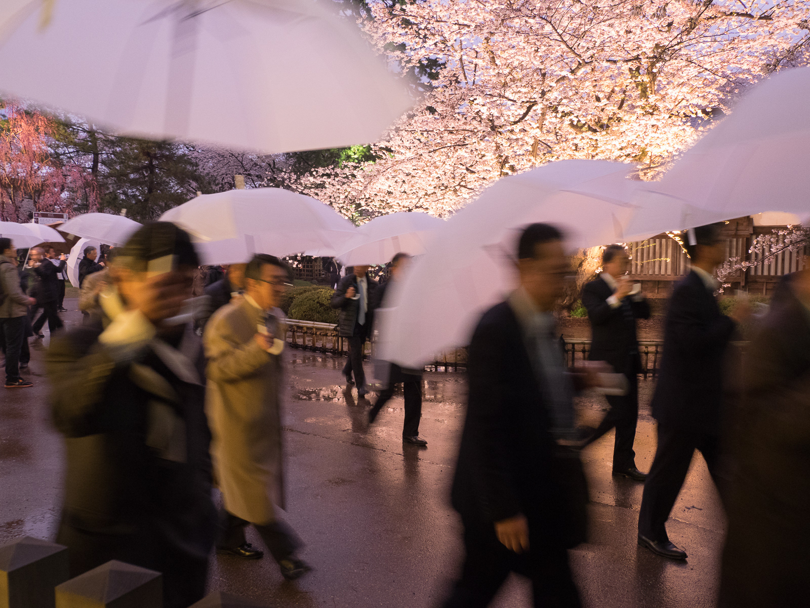 Japanese businessmen with umbrellas, Hirosaki Park, Aomori Prefecture (Japan 2017-3951) ©Neil A Meyerhoff 2017