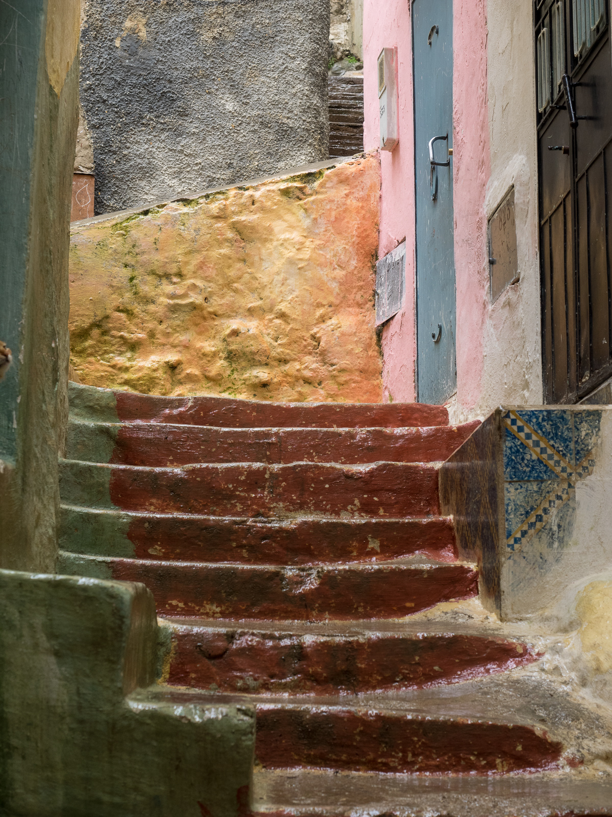 Stone Stairway, painted wall, Moulay Idriss (Morocco-171) ©Neil A Meyerhoff 2014