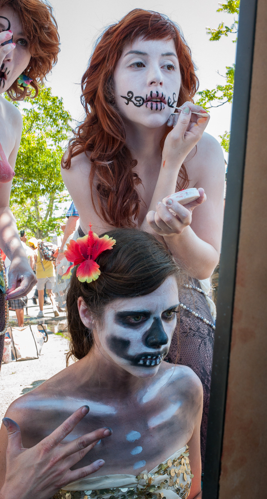 Young Women putting on make-up before Mermaid Parade, Coney Island, NY (Mermaid 2010-40) ©Neil A Meyerhoff 2010