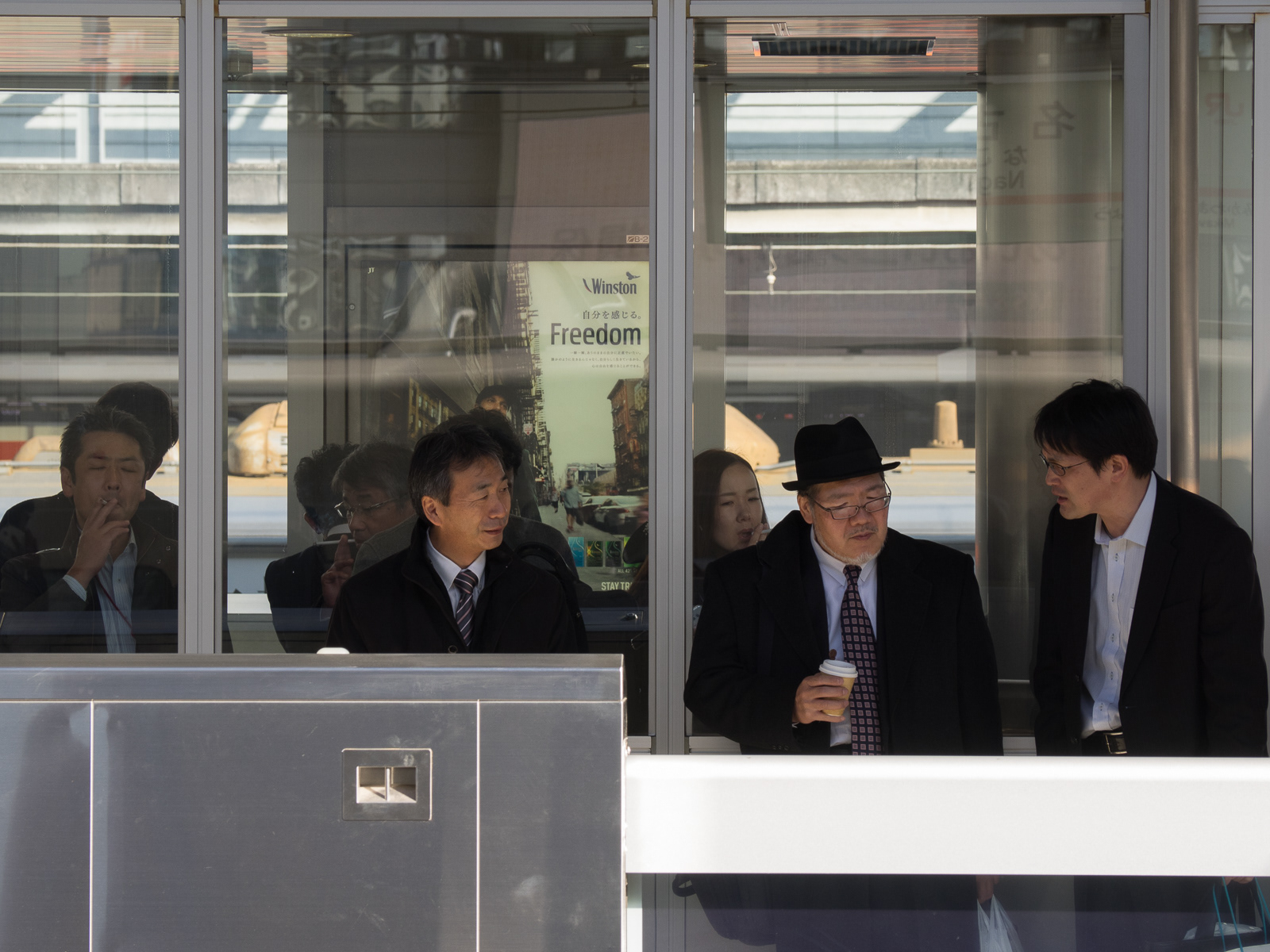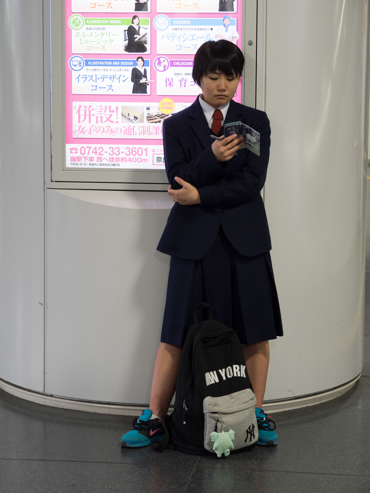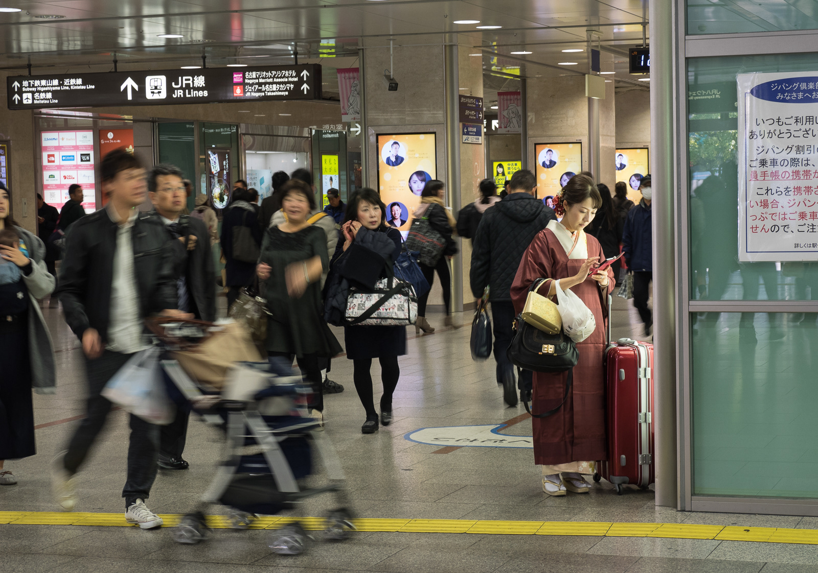 People looking at cellphones while waiting for train, Tokyo Station (Japan 2017-5891) ©Neil A Meyerhoff 2017
