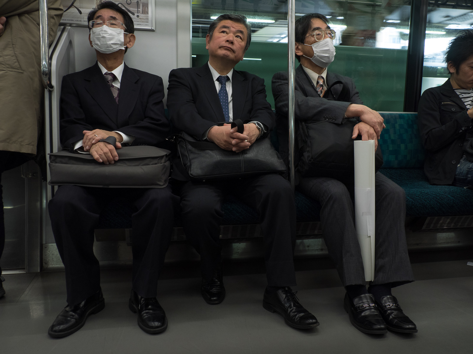 Three businessmen on Tokyo subway (Japan 2017-514) ©Neil A Meyerhoff 2017