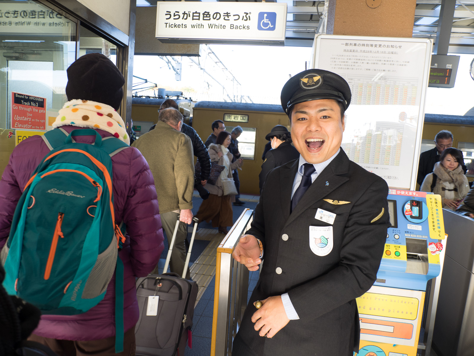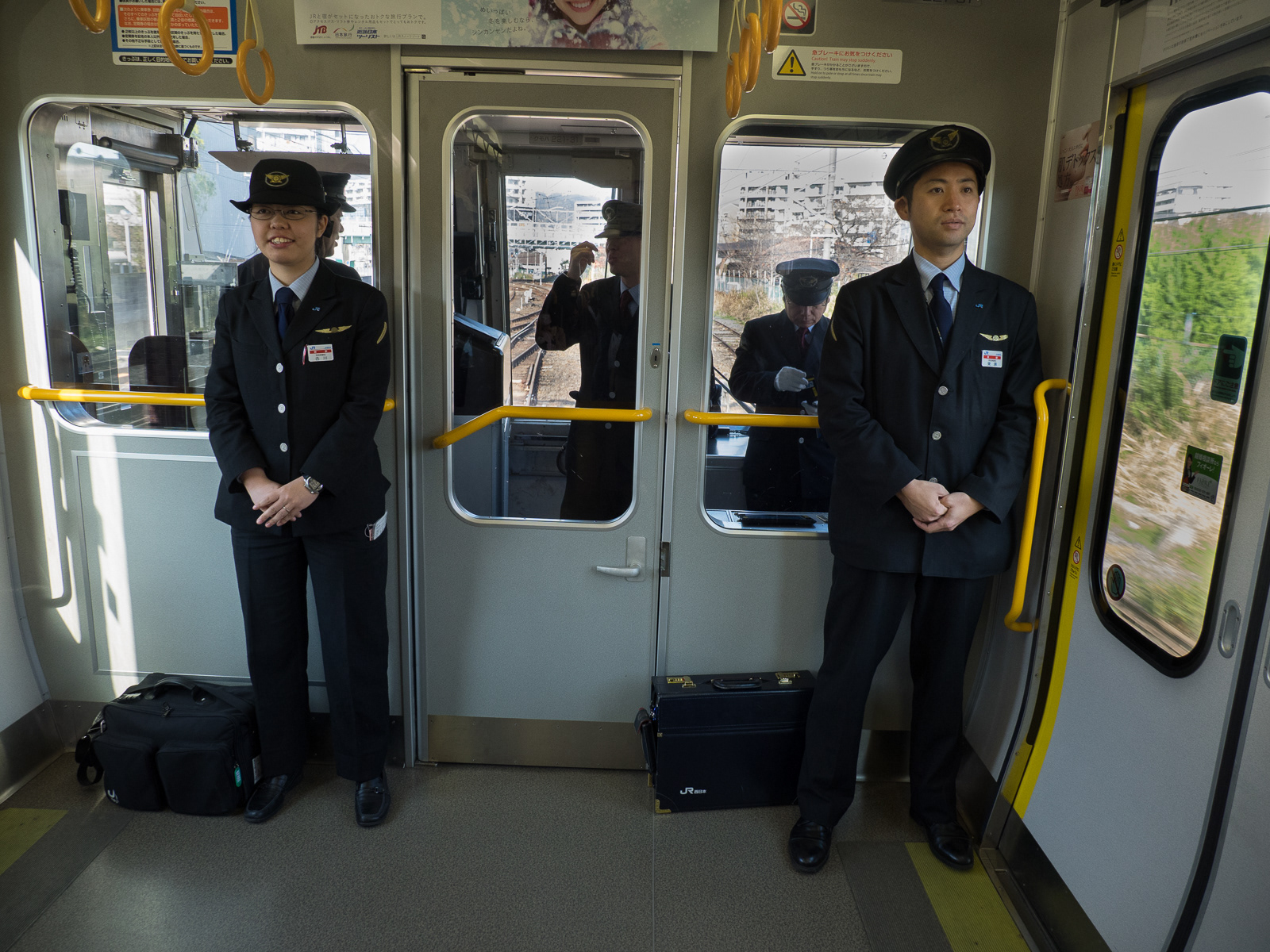 Female conductor announcing next station, Hirazumi, Iwate Prefecture (Japan 2017-1230) ©Neil A Meyerhoff 2017