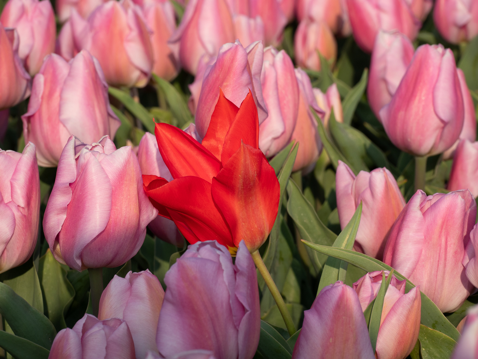 Red tulip in a pink field, Sint Maartensvlotbrug, Noord-Holland (Holland 2019-847) ©Neil A Meyerhoff< Inc. 2019